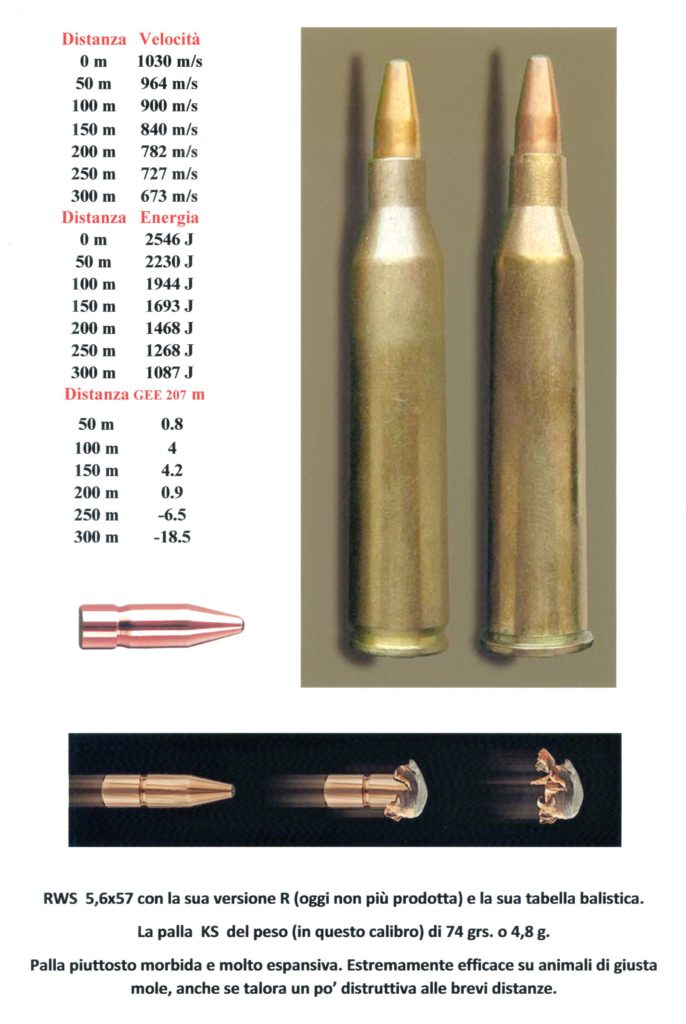 Vi ho già detto, credo, che da quando Vincenzo Perugini me lo ha costruito, ho sempre usato per il piccolo cervide, uno splendido “kipplauf” in un calibro poco comune ma efficientissimo: il piccolo ma potente 5,6 x 57. Non ho mai perduto un animale. La palla, una KS della RWS da 74 grani, è velocissima e molto tesa, seppure un po’ distruttiva alle brevi distanze. Morale: animali sempre caduti sul posto o dopo solo qualche passo.